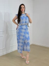 Blazer Tatá Martello Geiciane é confeccionado na malha paris com elastano. Sua gola smoking é uma gola inteiriça na frente e nas costas, sem recortes. Possui detalhes frontal em botões dourados não usáveis. Conta com recortes estratégicos deixando a silhueta acinturada. Dispõe de mangas longas.