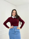Blusa gola alta, tecido tricot com detalhes de strass na gola.