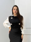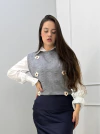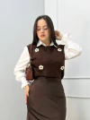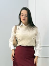 Camisa em crepe alfaiataria com manga em lastex, botões funcionais e caimento perfeito. Acompanha colete em modal com aplicação em flores.