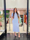 Conjunto max midi, tecido moletinho, blusa tradicional, saia com fenda na parte de trás.