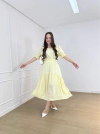 Conjunto midi, tecido viscolinho, possui forro, barrado assímetrico, manga dupla flare.