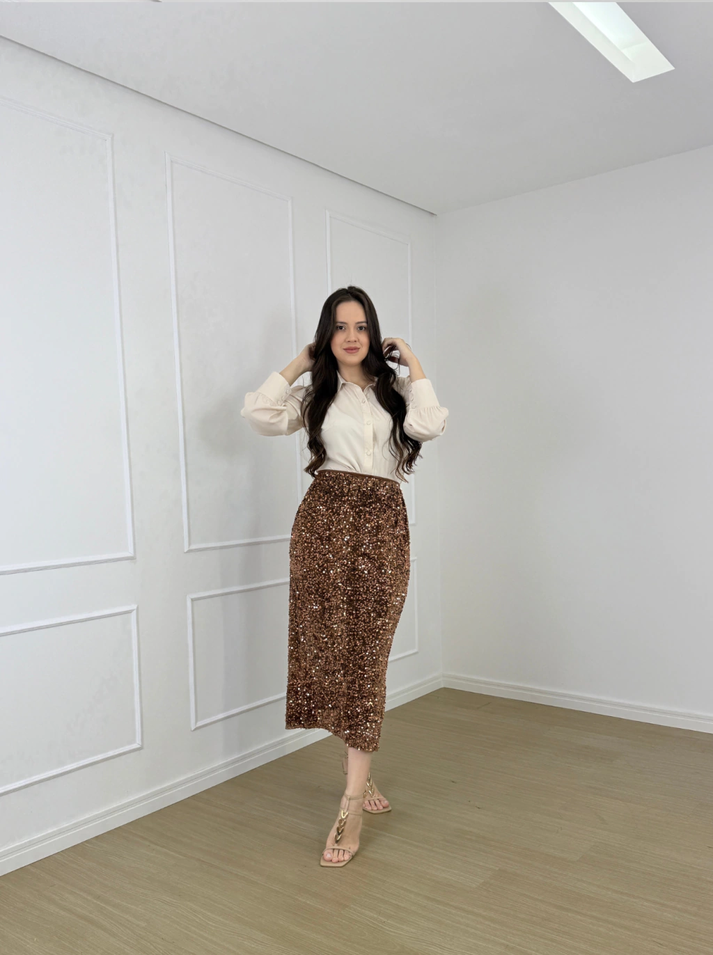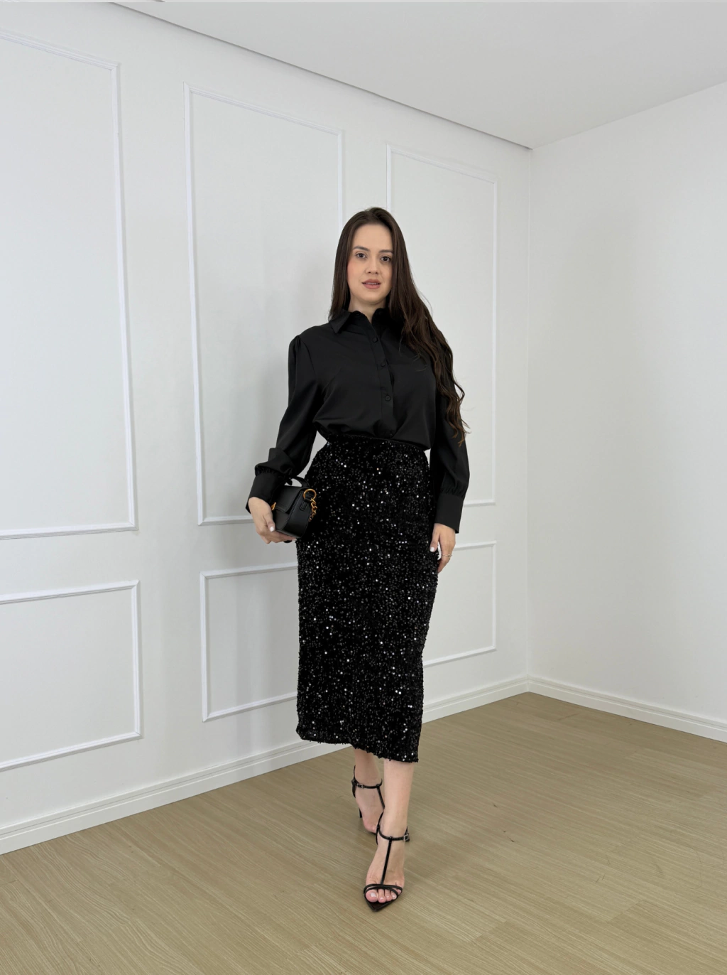 Saia Midi Paetê Karoline: brilho e elegância para momentos especiais!