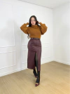 Saia resinada, acompanha cinto, possui fenda na frente, por dentro é flanelada.
