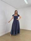 Vestido longo, tecido crepe de seda, possui lastex no busto, manga princesa.