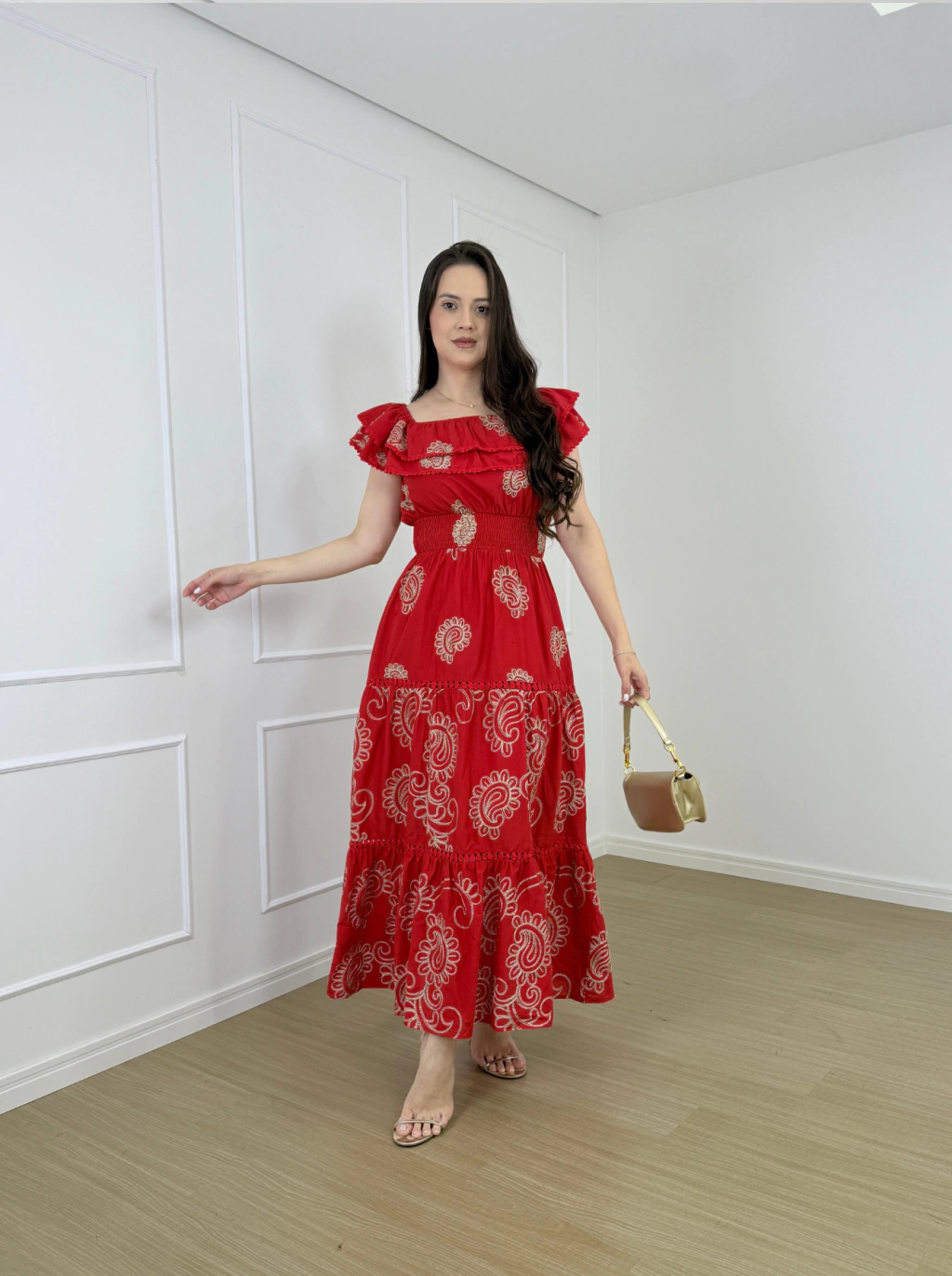 Invista em um vestido que une charme, conforto e sofisticação com o Vestido Longo Tricoline Três Marias Nara!