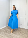 Vestido midi, tecido sensorial, possui gola alta, manga flare, e pala na cintura, acompanha faixa.